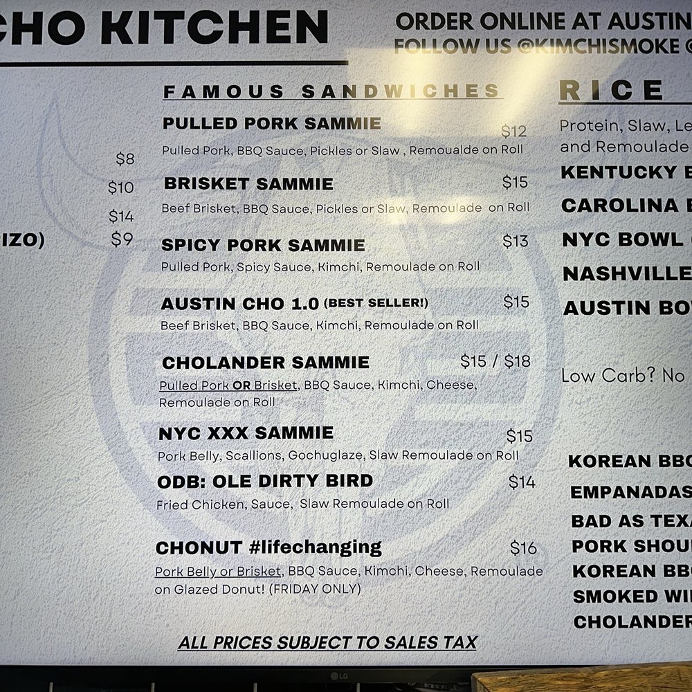 - Must-Try: The Austin Cho 1.0, with brisket, kimchi, and remoulade, is a crowd favorite.